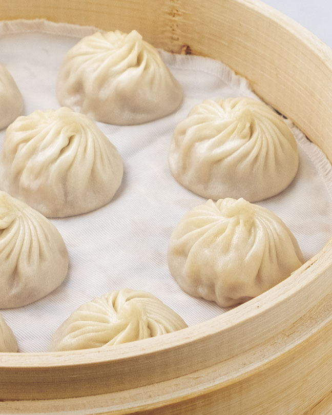 Xiao Long Bao means “little dumpling in a basket.” These broth-filled dumplings, from the Jiangnan region of China, are steamed in a bamboo basket.