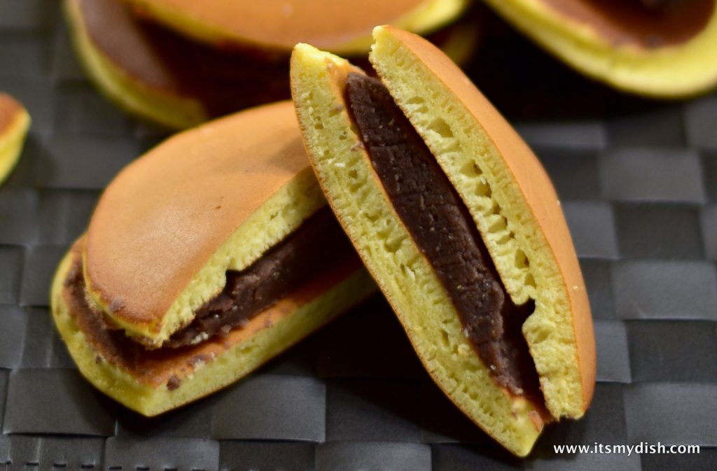Dorayaki is a type of Japanese confection, a chocolate pancake which consists of two small pancake-like patties made from castella wrapped around a filling of sweet azuki bean paste. The original Dorayaki consisted of only one layer.