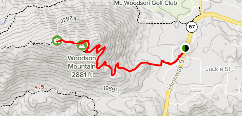 Woodson Mountain and Potato Chip Rock via Hwy 67 is a 4.1 mile heavily trafficked out and back trail located near Ramona, California that features beautiful wild flowers and is rated as moderate. The trail is primarily used for hiking, walking, running, and rock climbing and is accessible year-round. Dogs are also able to use this trail but must be kept on leash.