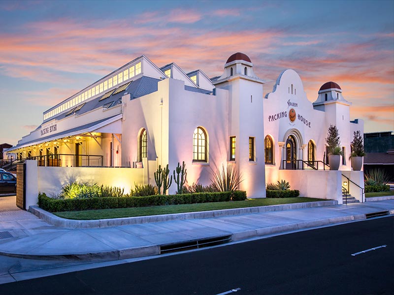 Upscale food court with local vendors & bars in a renovated, historic 1919 citrus-packing house.