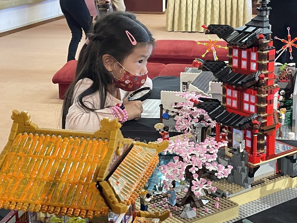 This little girl with the magnifying glass is determine to find Lego Eugene at the Exhibit.