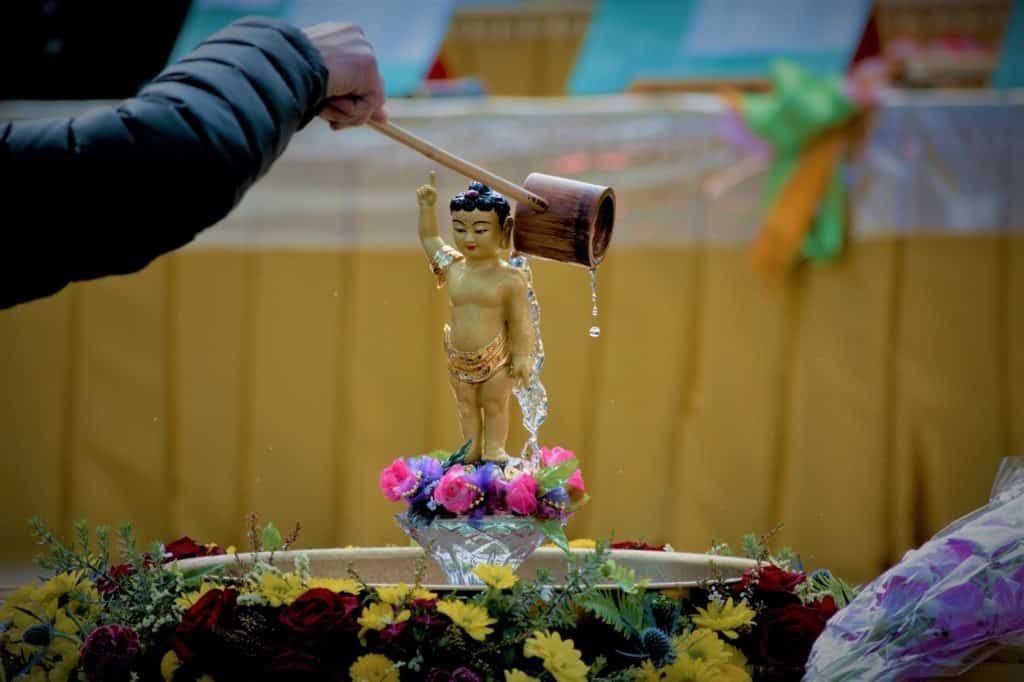 After the death of the Buddha, it became a tradition of bathe the statue of a little Buddha to commemorate His birth. Besides symbolising inner purification, it is believed that the act of bathing the Buddha can help with the purgation of our sins.