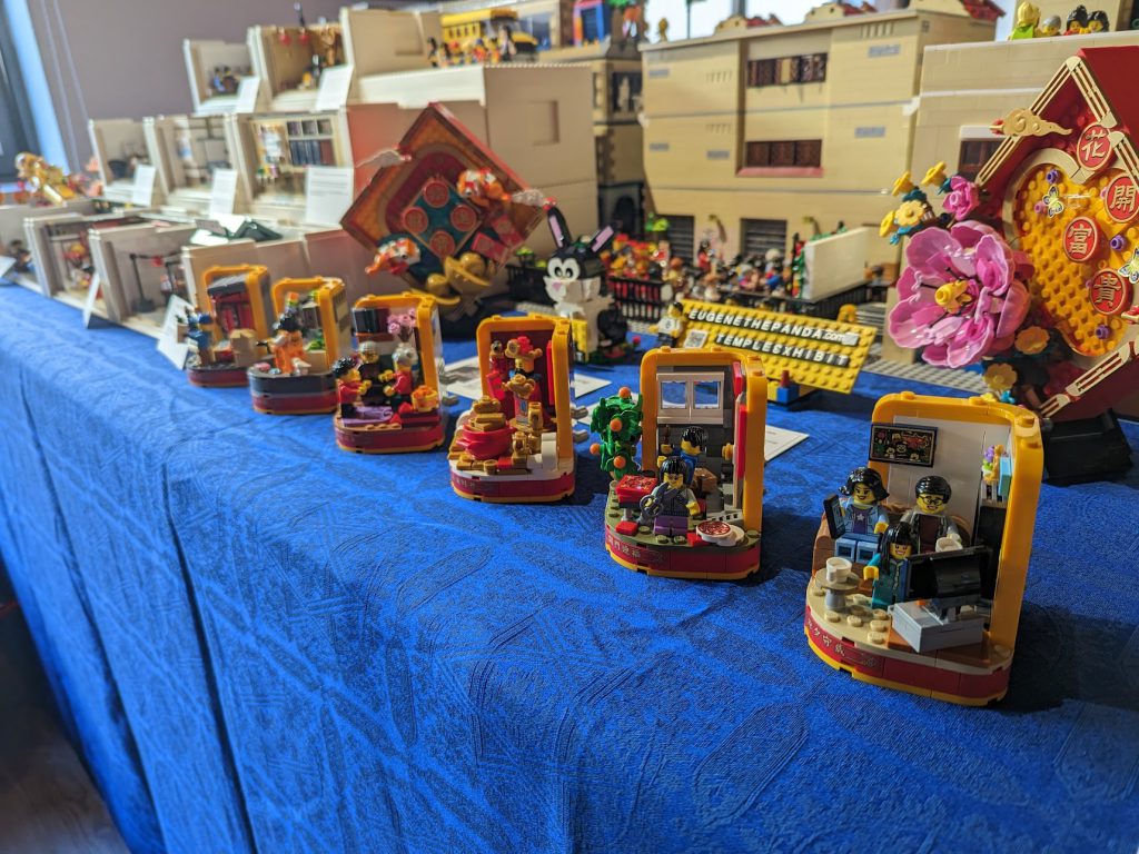 我的名字是 Eugene Chiang,我創作微型磚藝術品。 我開始收集樂高積木,然後開始構建自己的作品,這些作品對我都有一些意義。 我和我太太 Christina 多年來一直參與寺廟的活動,我首批作品之一即是佛光山西方寺。 自此之後,我又製作了更多的作品。 我想用樂高和樂高相關的積木來介紹介紹人們關於台灣(我的出生地)和亞洲文化。 在展覽中展示農曆新年是對亞洲文化的完美介紹。