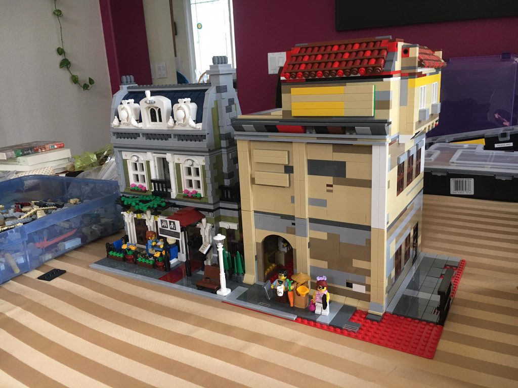 The Hsi Fang Temple Lego set compared to Lego’s own modular buildings.