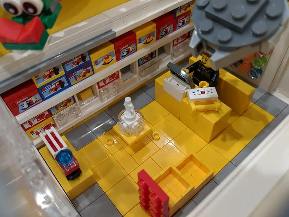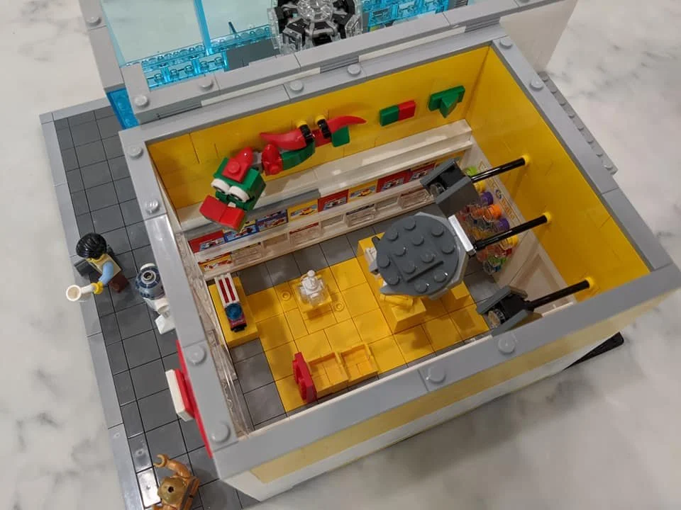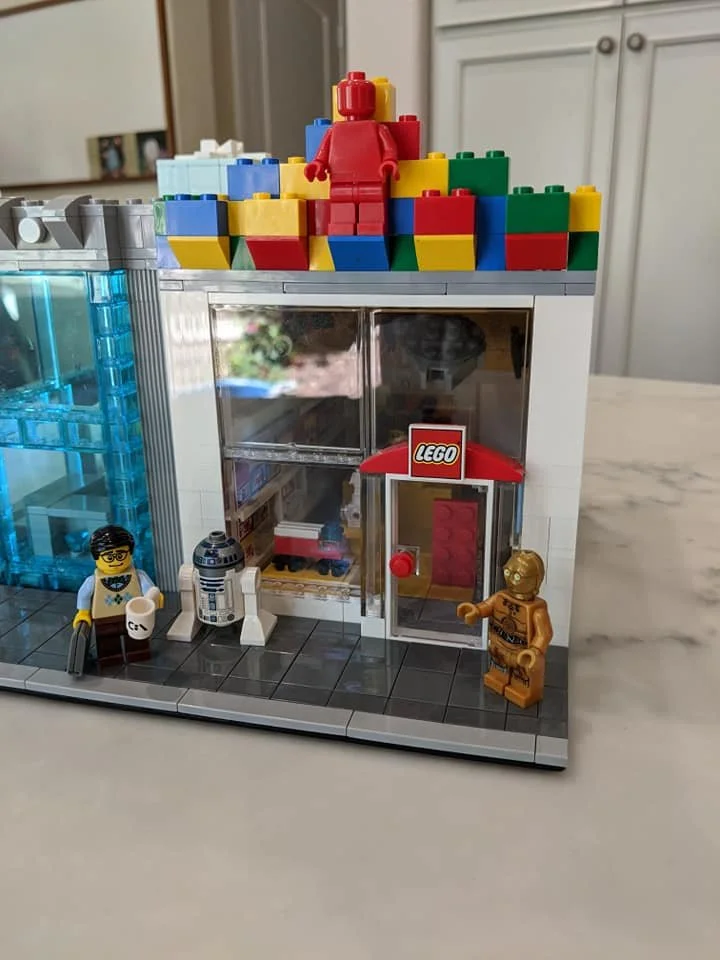 這套是基於我最喜歡的商店,你猜對了,樂高商店。 它具有許多星球大戰角色和通常的樂高商店設置。 我添加了屋頂以展示原始的樂高顏色主題。 左邊拐角處是我妻子最喜歡的商店。 它沒有名字,但你應該可以從淺藍色的大盒子和白色的絲帶上看出來。