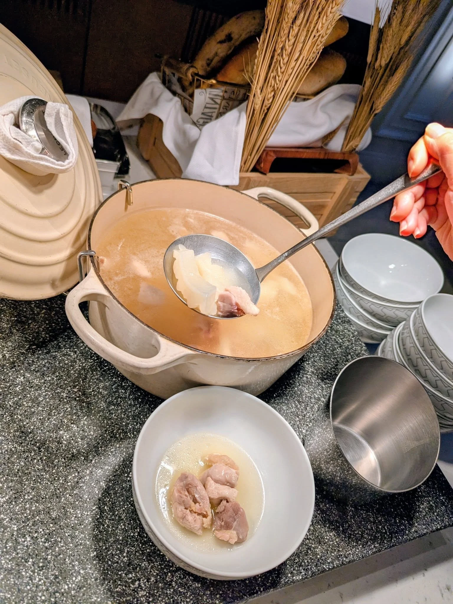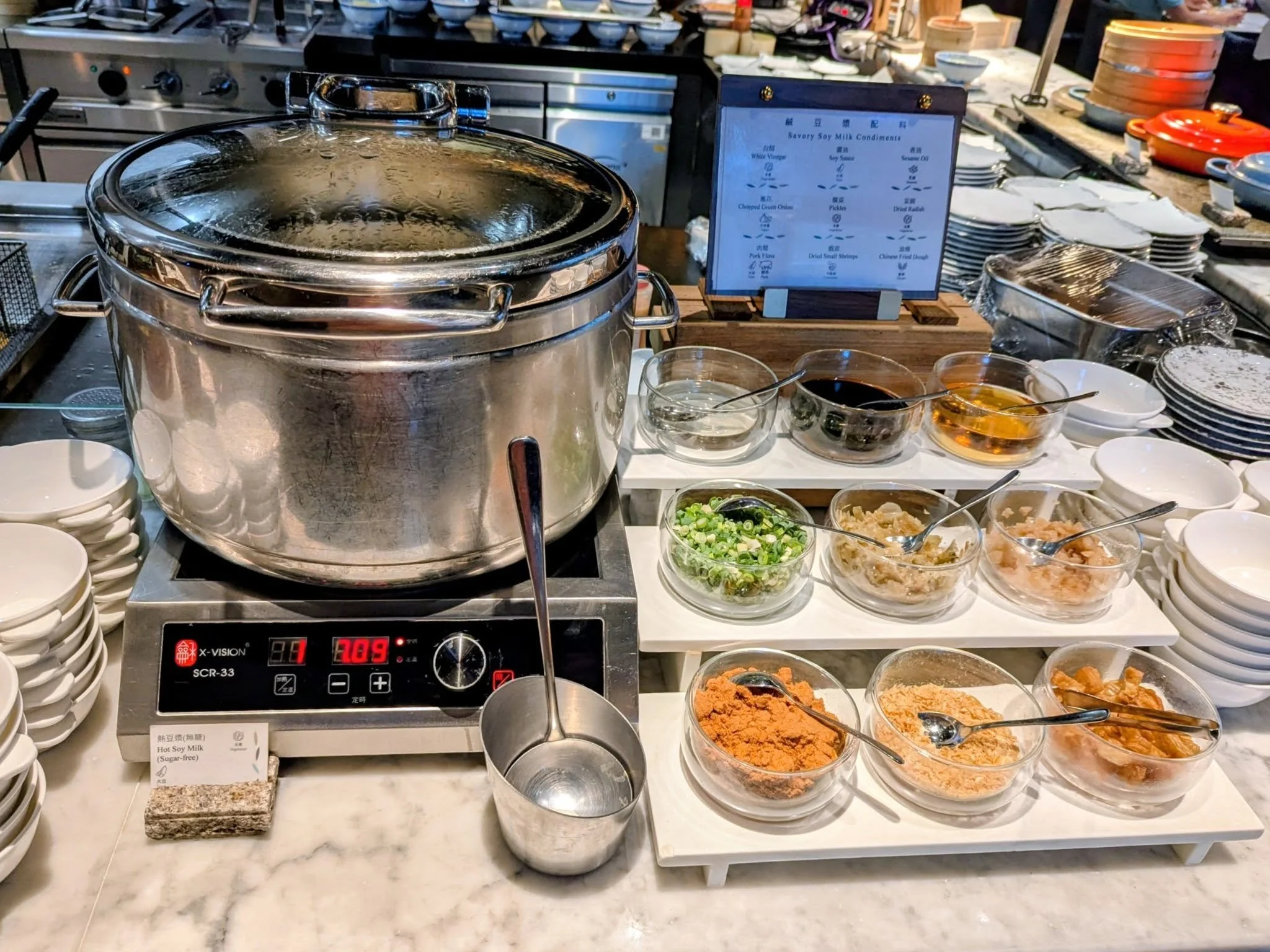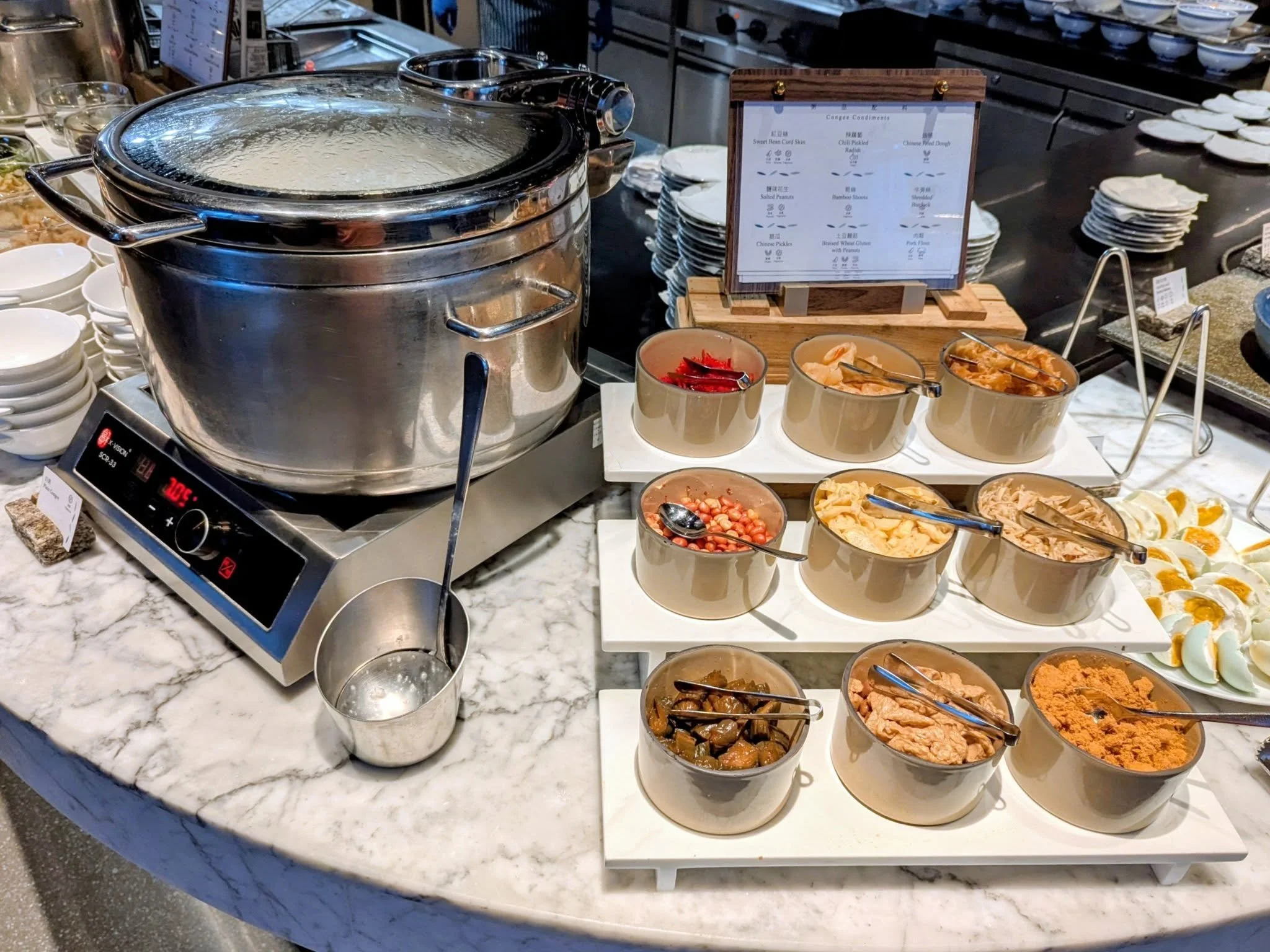 Breakfast buffet at the hotel.