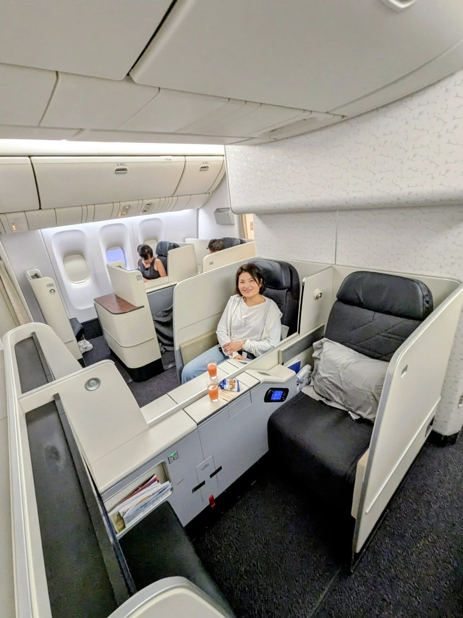 Korean Air Business Class on the Boeing 777-300ER in the 2-2-2 configuration. We got the secret cabin (row 7) because we only have 6 business seats in this section tucked away between first class and rest of the business class. It feels like you are in a room on an airplane.