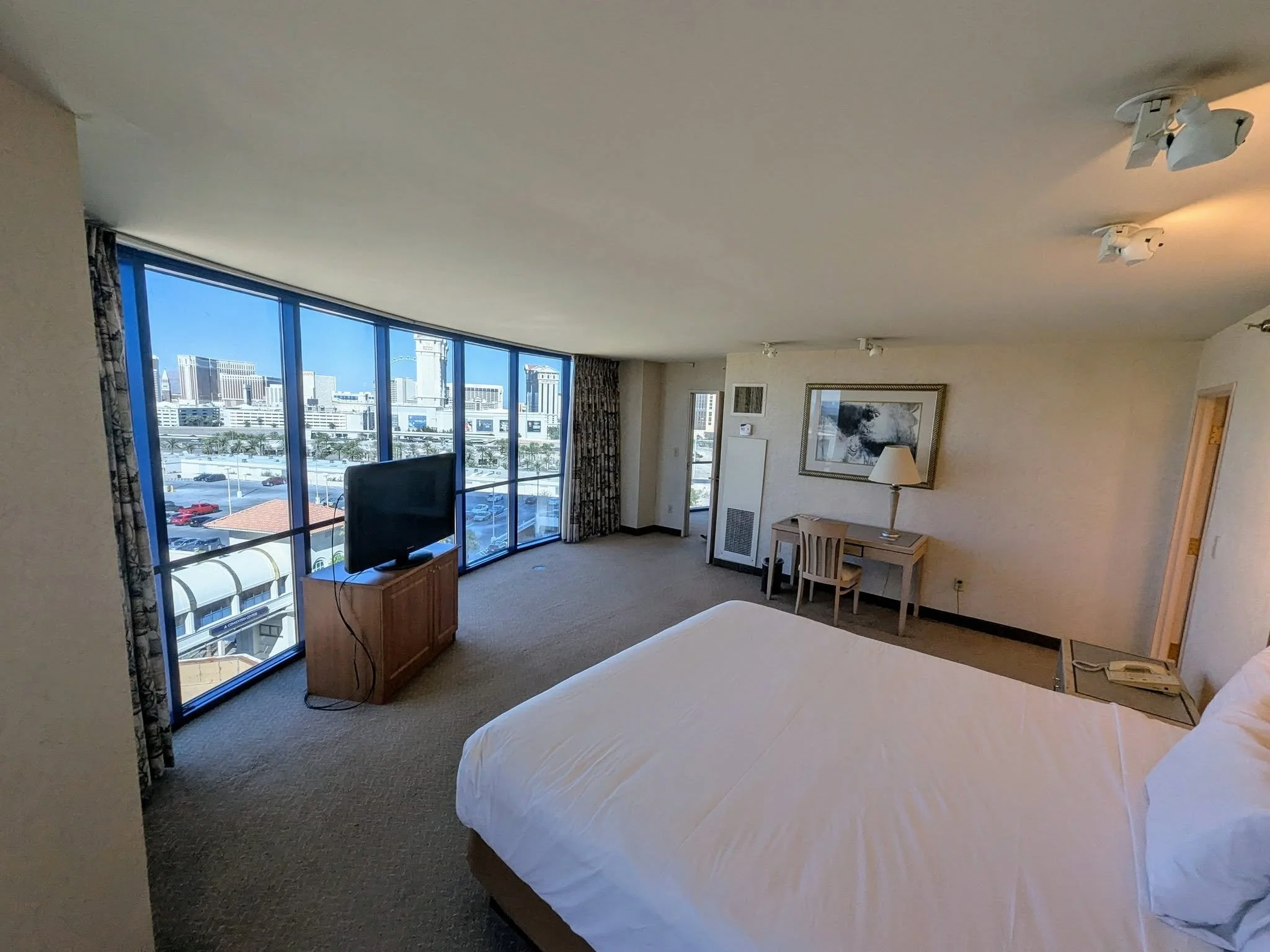 Our 1,600 sqft end unit at the Rio Hotel and Casino with 180 degree view of the Las Vegas strip. Even our bathtub has a view.